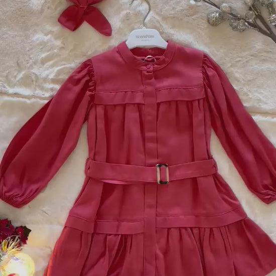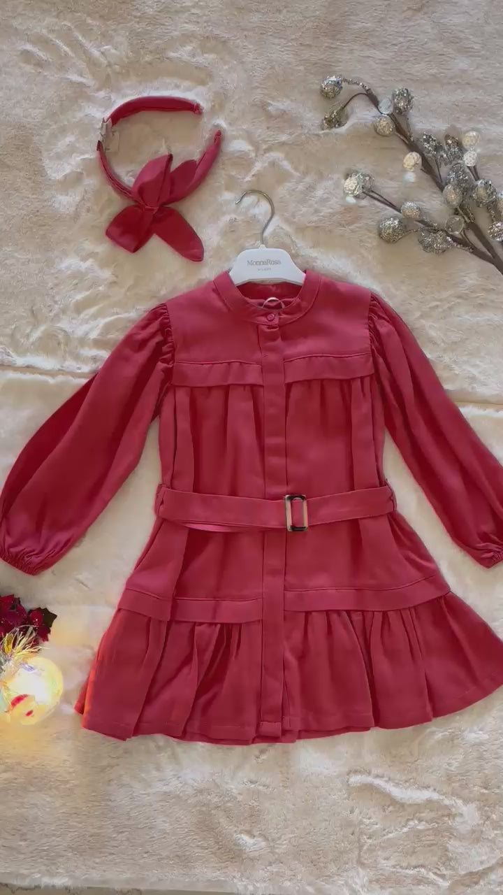 “Bella Rouge” Belted Dress with Headband