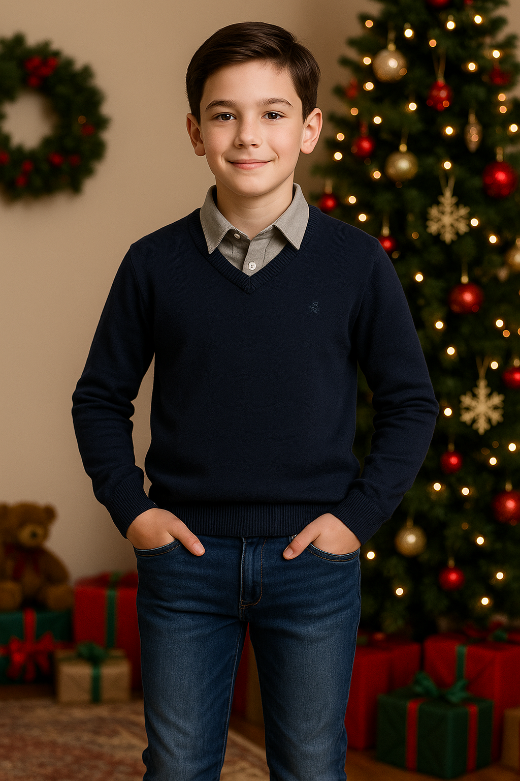 Perfect for family dinners, school events, or casual outings, this 3-piece outfit combines Italian craftsmanship with cozy winter comfort.