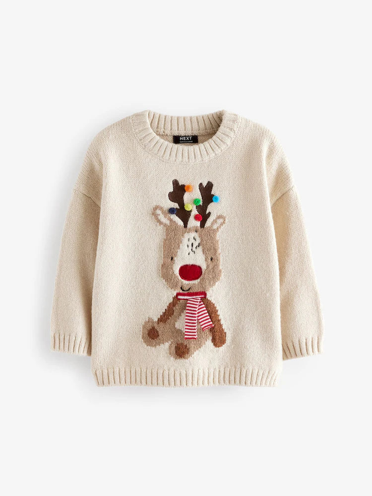 🦌 Pom-Pom Reindeer Cream Christmas Sweater | Original Next